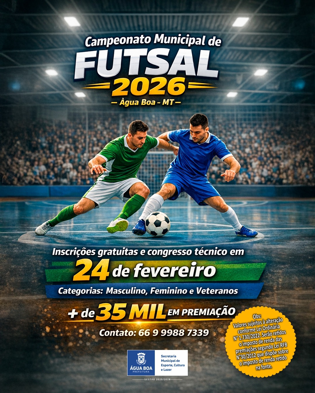 Água Boa já vive o clima de expectativa para o Campeonato Municipal de Futsal 2026, considerado o maior evento da modalidade no município. A competição promete reunir atletas, torcedores e amantes do esporte em uma grande celebração do futsal, com disputas acirradas e muita emoção dentro de quadra.