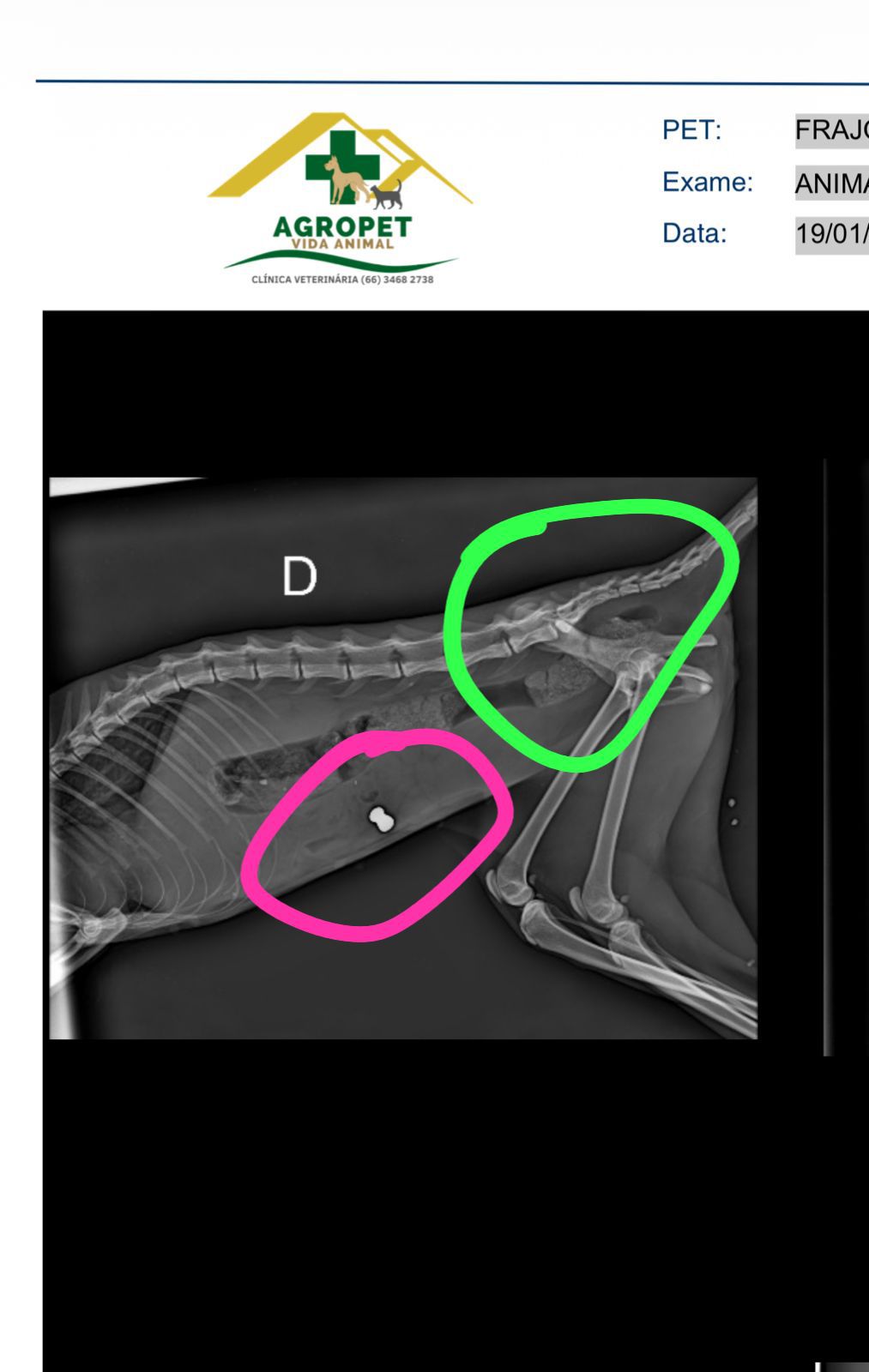 Mas o raio-x revelou algo ainda mais cruel: foi constatado um projétil alojado em seu estômago.