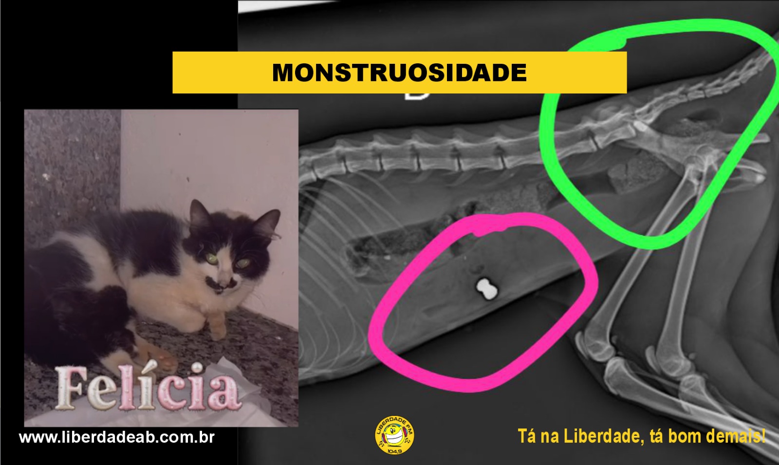 Agora, a Felícia luta pela vida. A mesma esta internada se recuperando e posteriormente necessita realizar duas cirurgias. (Fratura Pélvica e retirada do Projetil alojado).