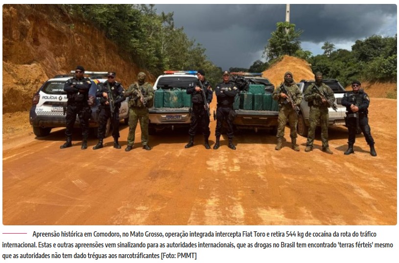 Embora o relatório do Fórum Brasileiro de Segurança Pública aponte Mato Grosso como eixo central das rotas de drogas na Amazônia Legal, gestores da área avaliam que os números de apreensão também refletem a capacidade de reação do Estado frente ao avanço do narcotráfico.