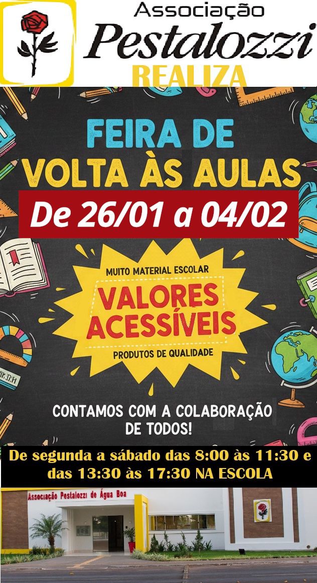 A Associação Pestalozzi de Água Boa está realizando a tradicional Feira de Volta às Aulas, uma iniciativa solidária que busca facilitar a preparação de crianças e adolescentes para o início do ano letivo, oferecendo material escolar com valores acessíveis e produtos de qualidade.