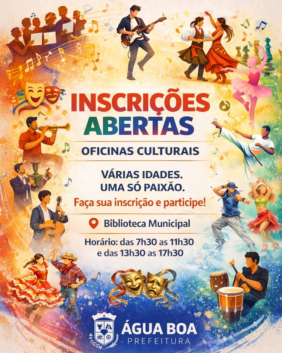 A Prefeitura de Água Boa anunciou a abertura das inscrições para as Oficinas Culturais, iniciativa que busca incentivar a arte, a criatividade e a participação cultural da comunidade. As atividades são voltadas para pessoas de várias idades e abrangem diferentes linguagens artísticas, como música, dança, teatro e outras expressões culturais.