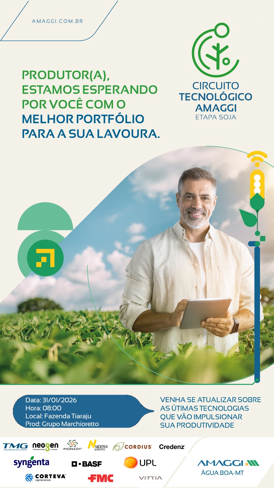 Neste sábado dia 31/01, a AMAGGI realizou na Fazenda Tiarjú / Grupo Marchioretto um Dia de Campo, o momento foi de grande aprendizado e troca de experiências, reunindo produtores, técnicos e parceiros para compartilhar conhecimentos e práticas voltadas ao desenvolvimento sustentável da produção.