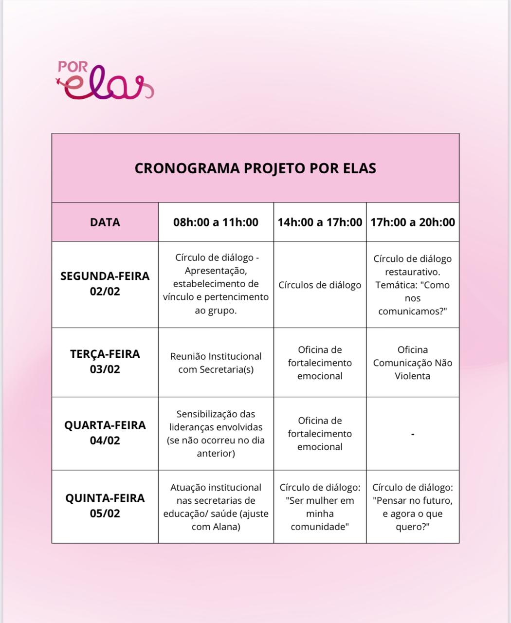 O “Por Elas” oferece 25 vagas e ainda há cerca de 10 disponíveis. As interessadas podem procurar a Coordenadoria de Políticas para Mulheres, no prédio anexo ao CREAS, para realizar inscrição e obter mais informações.