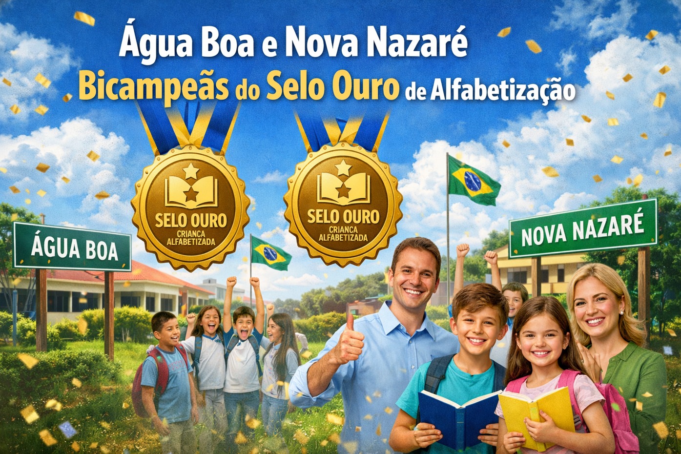 Os municípios de Água Boa e Nova Nazaré celebram mais uma importante conquista para a educação pública: ambos foram novamente reconhecidos com o Selo Ouro do Compromisso Nacional Criança Alfabetizada, concedido pelo Ministério da Educação (MEC). O resultado consolida o trabalho desenvolvido pelas redes municipais e reafirma o compromisso com a alfabetização na idade certa.