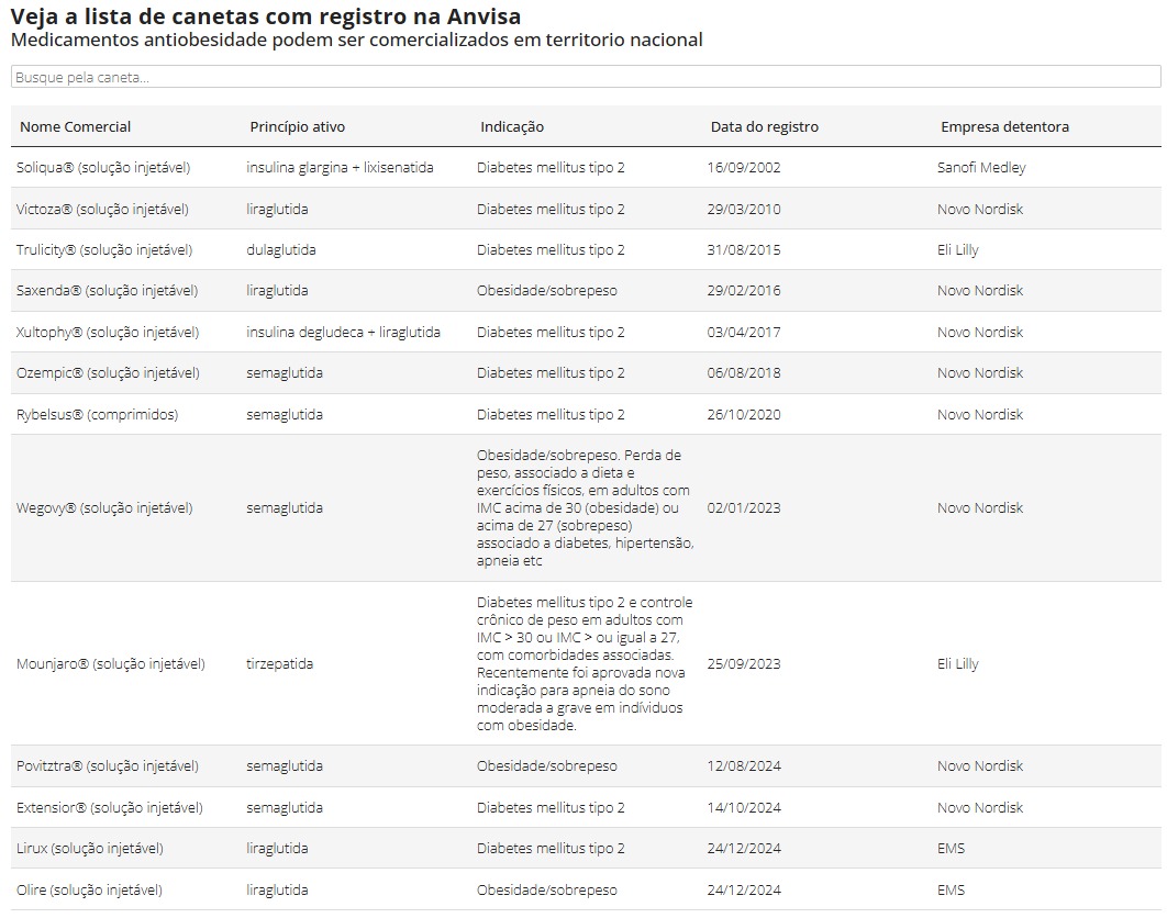 O alerta abrange todos os produtos que contenham semaglutida, liraglutida, tirzepatida e dulaglutida — princípios ativos presentes nas principais canetas comercializadas no país. Embora a pancreatite já conste como possível reação adversa nas bulas, a Anvisa destacou o aumento recente das notificações.