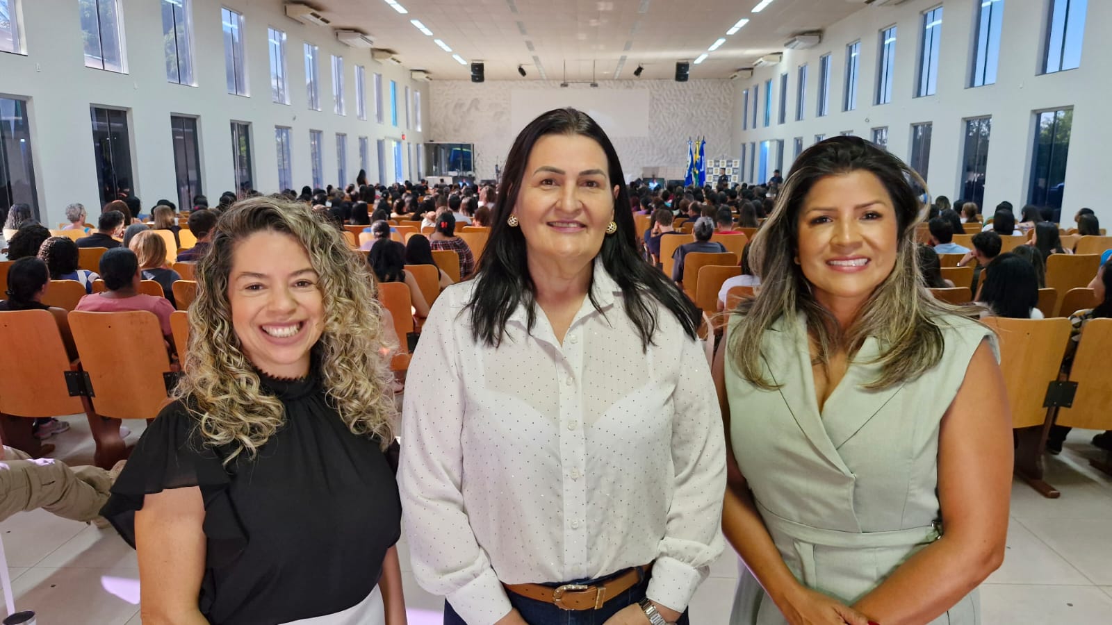 Na foto, coordenadora da Mulher, Lisiani Figueiró; secretária municipal de Educação, Cléria Wagner; delegada Janira Laranjeira.