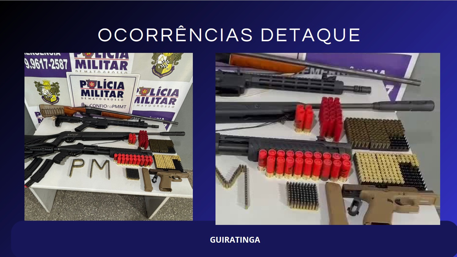 A operação também resultou na apreensão de armas de fogo, munições, entorpecentes e na recuperação de veículos, além de ações ostensivas e preventivas em áreas urbanas e rurais. Municípios como Guiratinga também tiveram ocorrências de destaque, com apreensões relevantes realizadas pelas equipes locais.