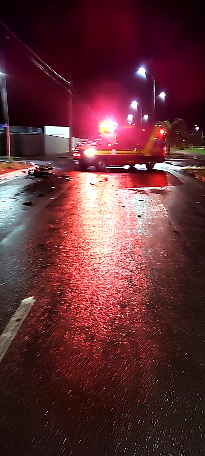 A equipe foi acionada pela Polícia Militar às 22h23, após acompanhamento policial em via pública. No local, foi constatada uma colisão transversal entre motocicleta e automóvel. Conforme informações repassadas, o condutor da motocicleta estaria evadindo-se da viatura policial quando, ao cruzar determinado trecho da via, colidiu contra um veículo que realizava travessia regular.