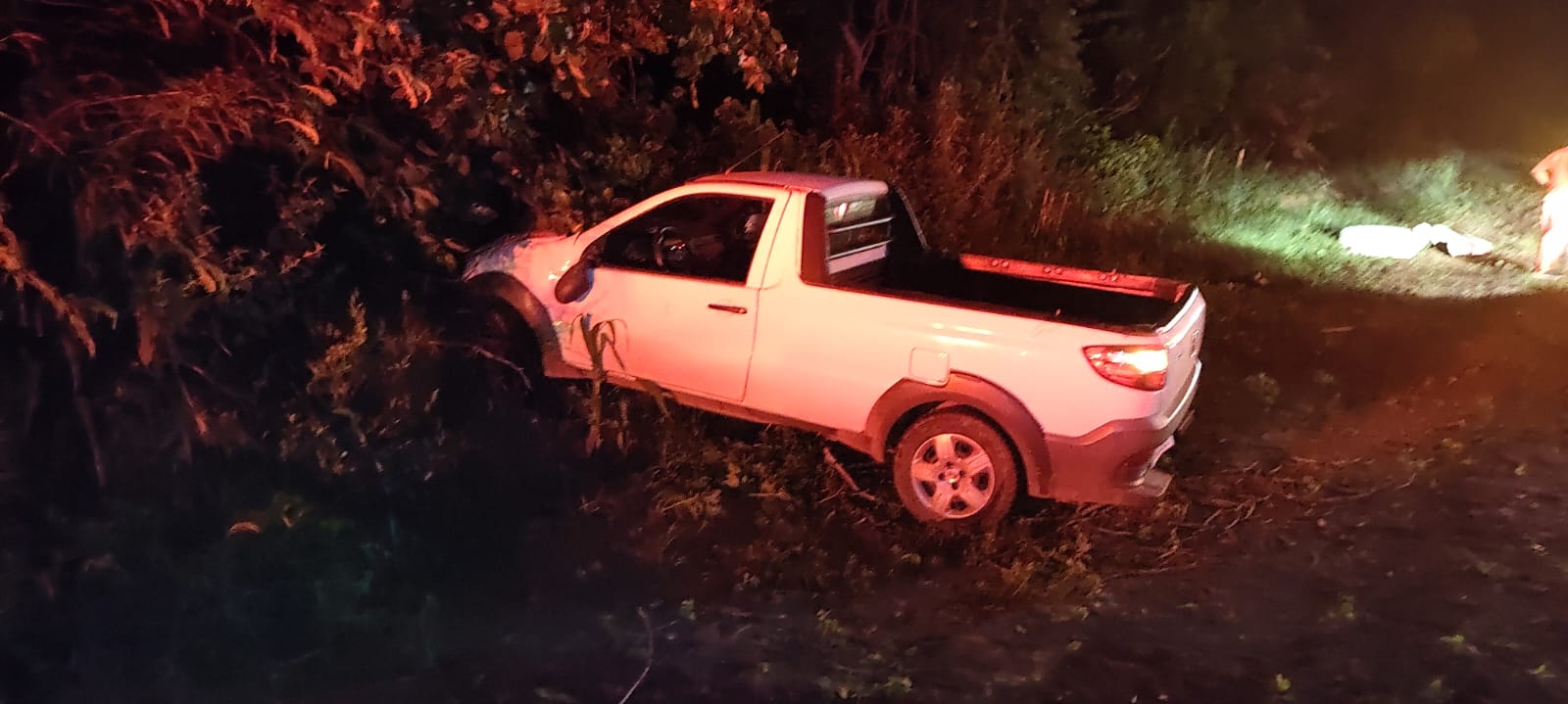 Ao chegarem ao local, os militares encontraram o veículo fora da pista de rolamento, apoiado lateralmente. A vítima permanecia no interior do automóvel, consciente e orientada, porém com fortes dores em um dos membros superiores e múltiplas lesões pelo corpo, incluindo ferimentos na região craniana e facial, com sangramento moderado.