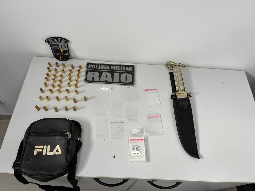 Em Guarantã do Norte, equipes da Companhia Raio realizaram duas ações distintas que resultaram na prisão de dois homens. Na primeira ocorrência, os policiais capturaram um foragido da Justiça, que também estava com uma porção de cocaína e 41 munições de calibres 9 mm e .380.