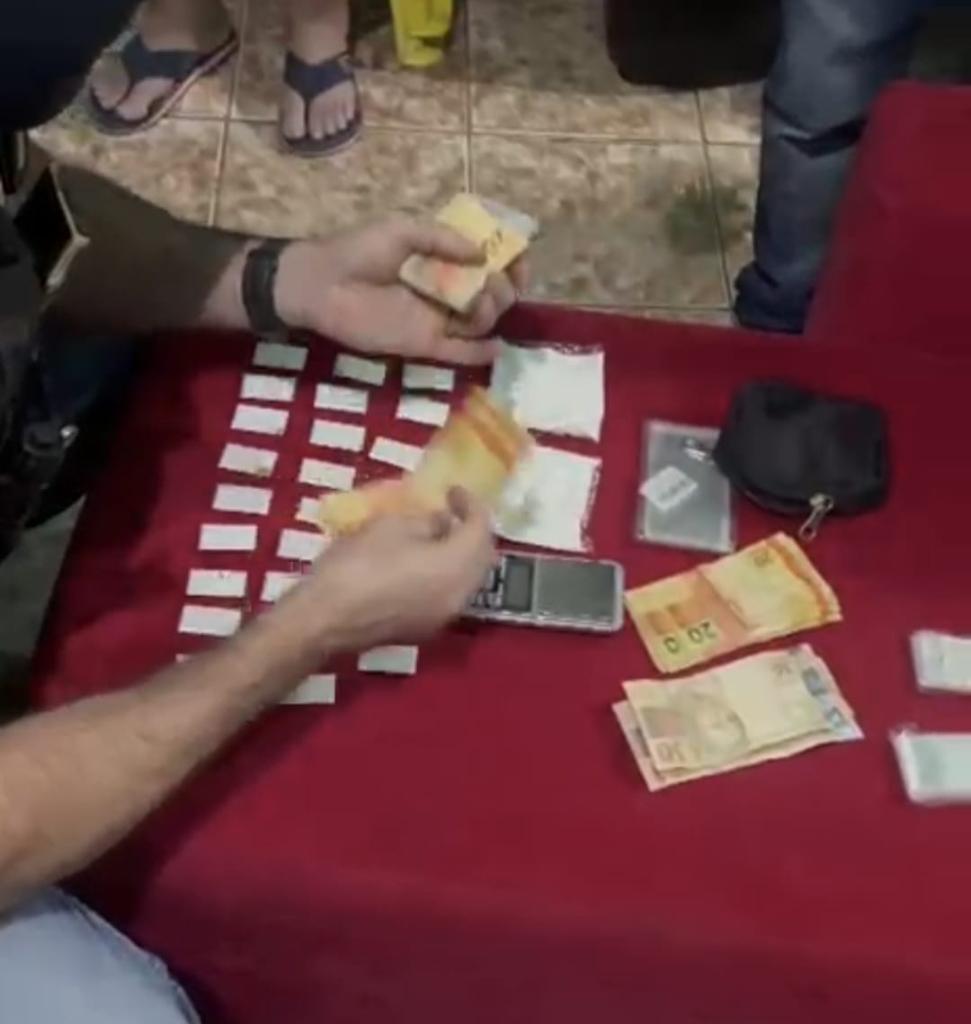 Durante a abordagem, os militares encontraram o dinheiro fracionado em uma necessaire e diversas porções de drogas escondidas no interior do veículo utilizado pelos suspeitos. A mulher afirmou ser responsável por guardar os valores provenientes da venda de entorpecentes.
