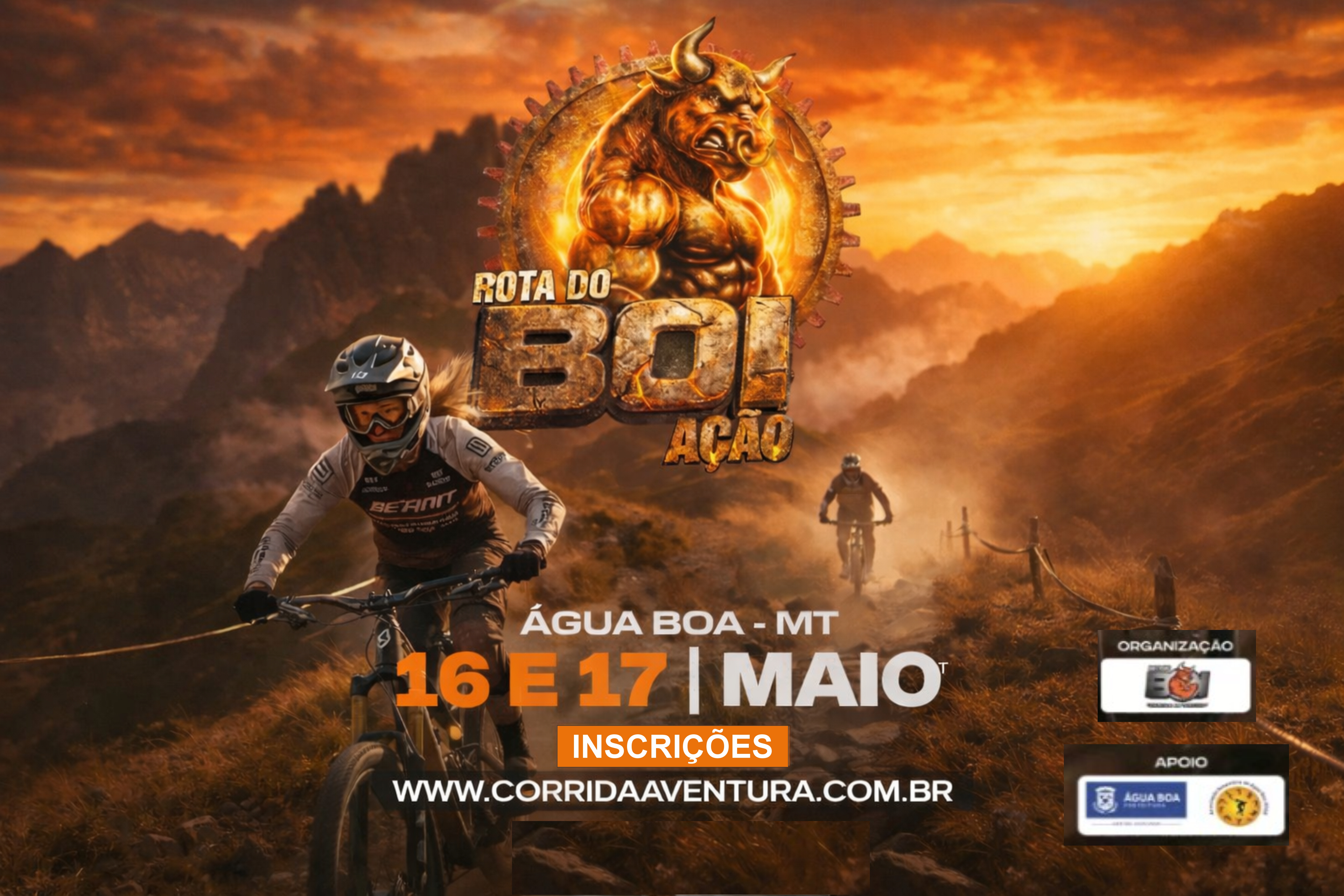 A cidade de Água Boa se prepara para receber a 5ª Rota do Boi MTB de XCM, que será realizada nos dias 16 e 17 de maio de 2026, reunindo ciclistas de toda a região em um grande evento esportivo.