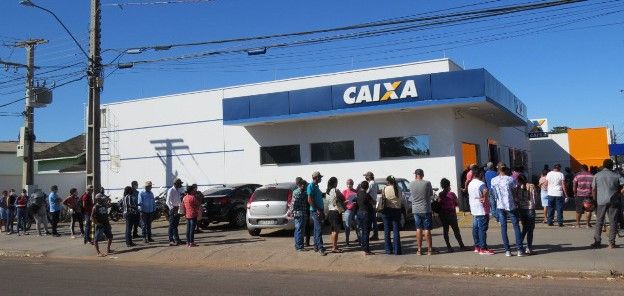 Não há distanciamento social na fila em frente a Caixa Econômica Federal em Água Boa
