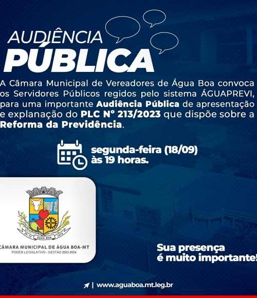 A audiência acontece no próximo dia 18 de setembro, segunda feira as 19 horas junto ao plenário da Câmara.